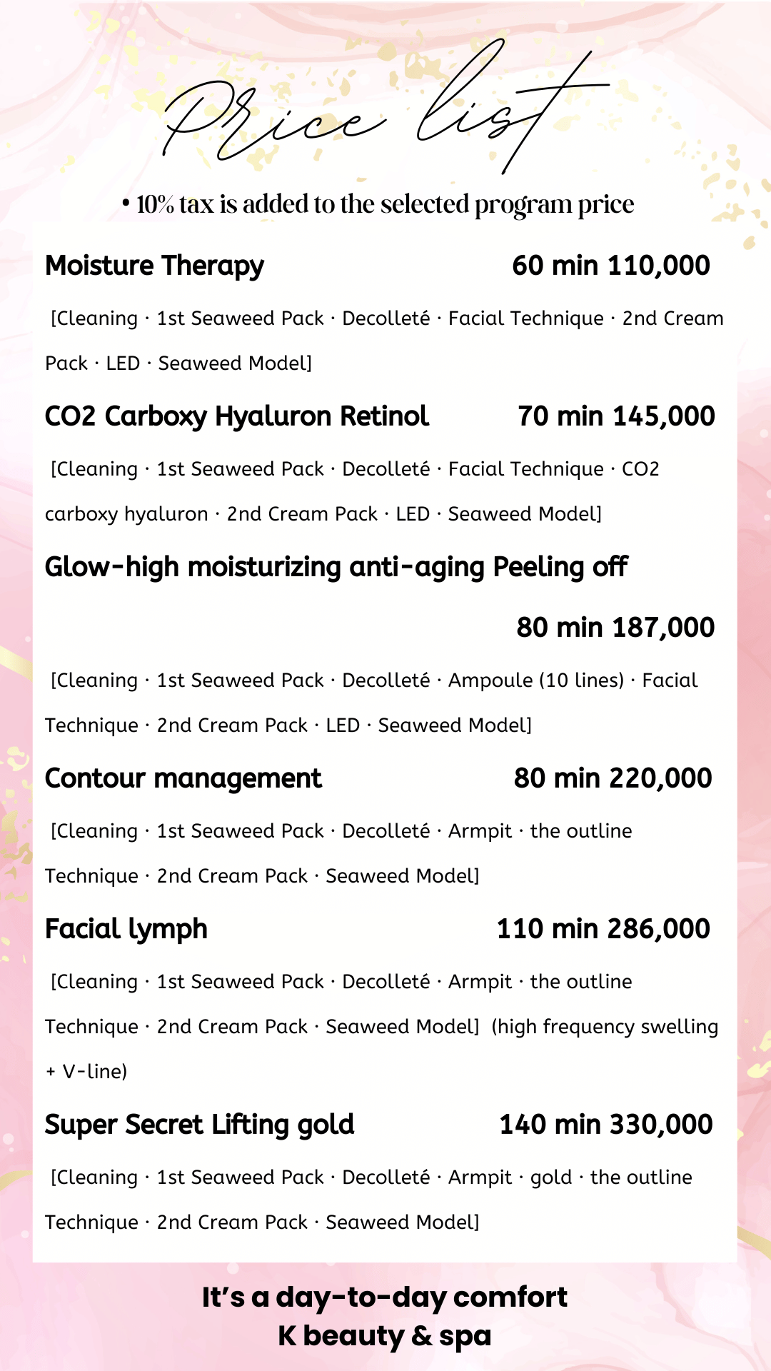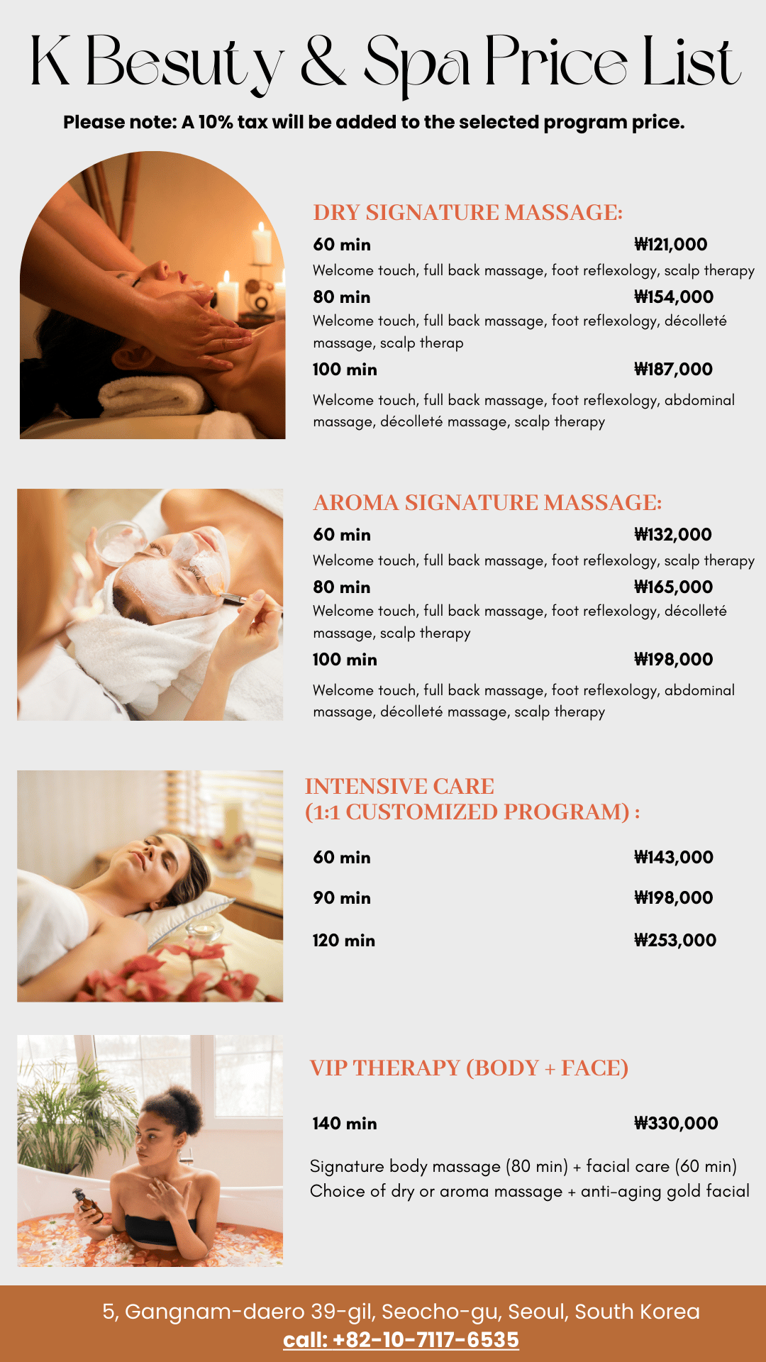 Your relaxation retreat in the heart of Seoul. We offer expertly crafted treatments including deep-tissue massages, hydrating facials, and soothing head spas, all designed to refresh travelers and city dwellers alike. Inspired by Korean beauty rituals and global wellness techniques, our services are delivered by skilled therapists using premium products. Whether you're unwinding after a long flight or treating yourself to a moment of calm, K-Beauty & Spa is your go-to destination for rest and renewal in Seoul.